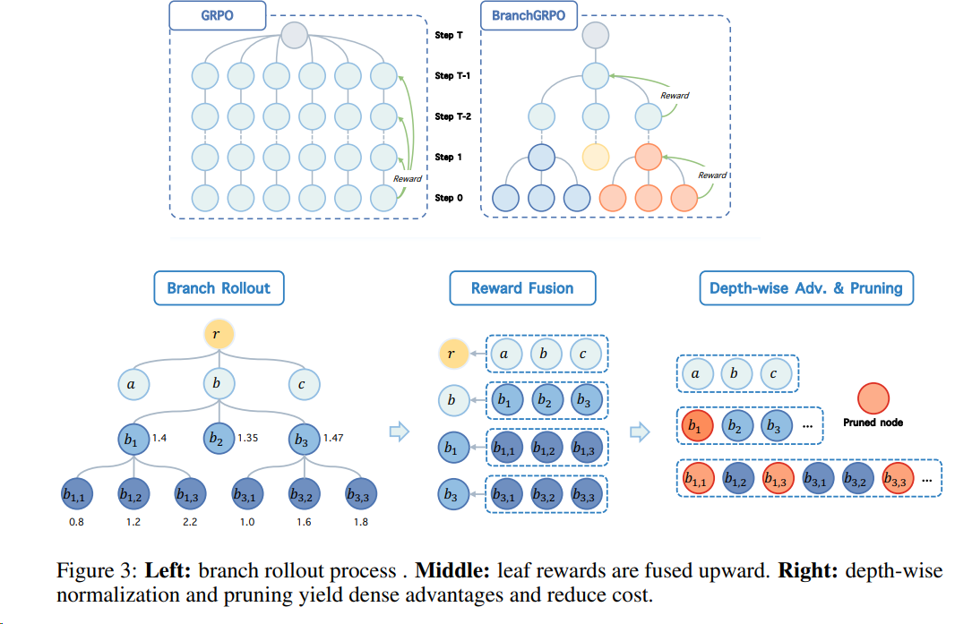 | TreePo | 2025 | Same as GRPO's | Yes | Yes | Self-guided rollout, reduced compute burden | Group-based reward | Paper | Code Model Website |