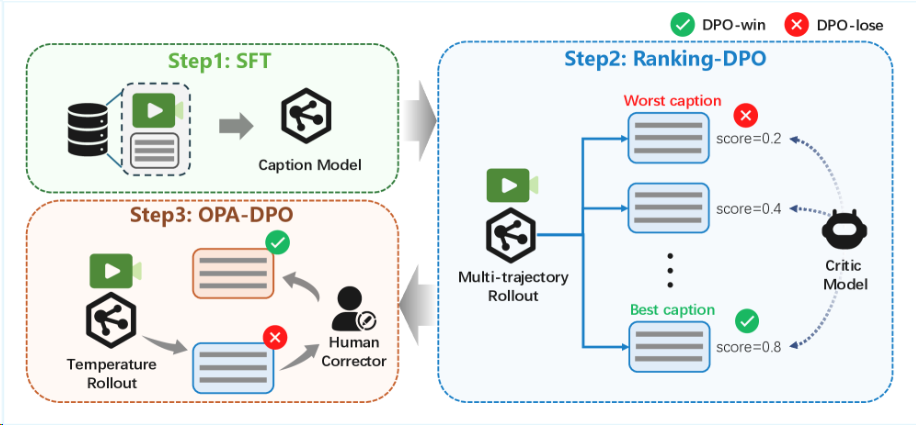 - RLAIF6其中上下文感知的奖励模型(Context-Aware Reward Modeling):通过将视频细分成多个片段,并为每个片段生成详细的描述,然后将这些描述整合到奖励模型中,以提供更清晰的视频内容理解。